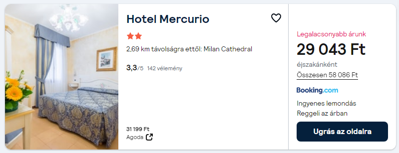 Repülőjegy + szállás reggelivel = 45.440 Ft/fő