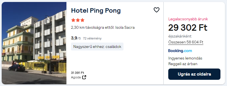 Repülőjegy + szállás reggelivel = 66.840 Ft/fő