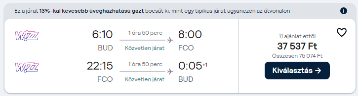 Külön-külön a repülőjegy és szállás képre kattintva tudod ellenőrizni az árakat és foglalni.