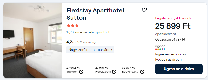 Repülőjegy + szállás reggelivel = 46.820 Ft/fő