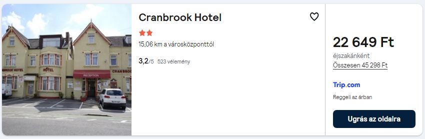 Repülőjegy + szállás reggelivel = 41.430 Ft/fő
