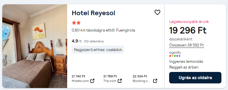 Repülőjegy + szállás reggelivel = 45.525 Ft/fő