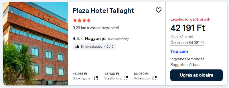 Repülőjegy + szállás reggelivel = 64.570 Ft/fő