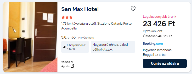 Repülőjegy + szállás reggelivel = 43.860 Ft/fő