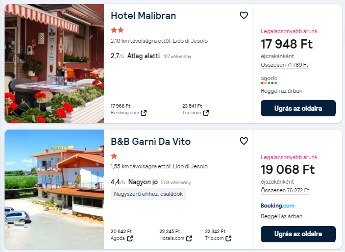 5 napos Lido di Jesolo nyaralás csak 55.750 Ft. Repjegy + Hotel reggelivel