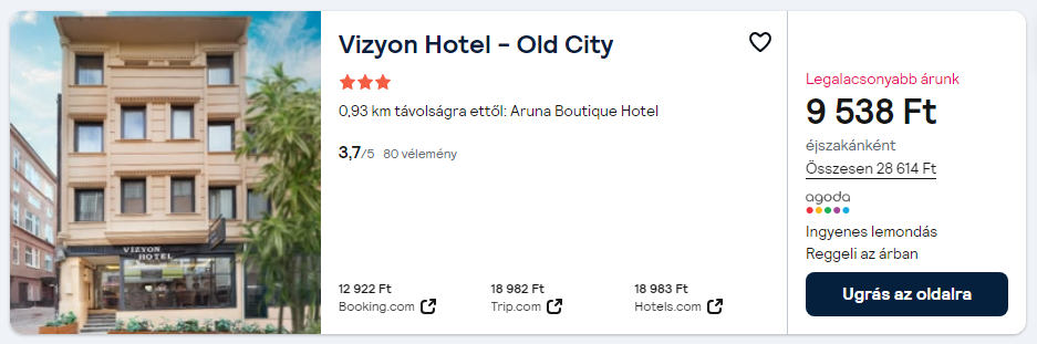 Repülőjegy + Hotel reggelivel = 47.965 Ft/fő