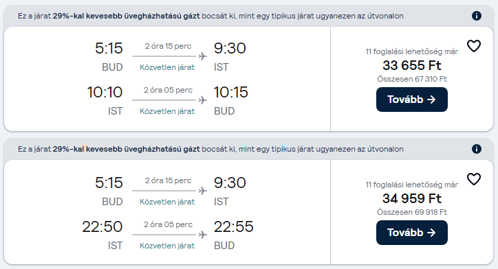 Az árak a megosztás pillanatában érvényesek, mivel az olcsó repülőjegyekből csak minimális darab áll rendelkezésre egy adott időpontra. A légitársaságok a szabad helyek függvényében módosíthatják áraikat. A repülőjegy ára a legalacsonyabb kategóriára vonatkozik és tartalmaz 1 ingyenesen felvihető kisméretű kézitáskát/hátizsákot. További részletek a légitársaság weboldalán.