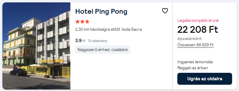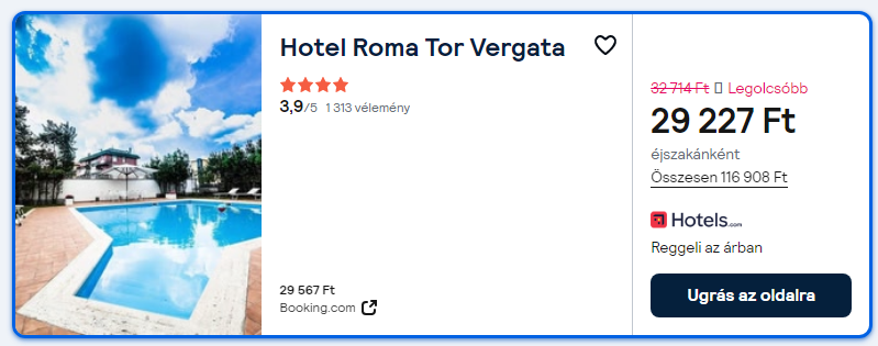 Repülőjegy + szállás reggelivel = 69.245 Ft/fő