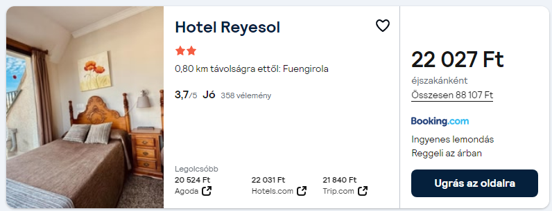 Repülőjegy + szállás reggelivel = 66.435 Ft/fő