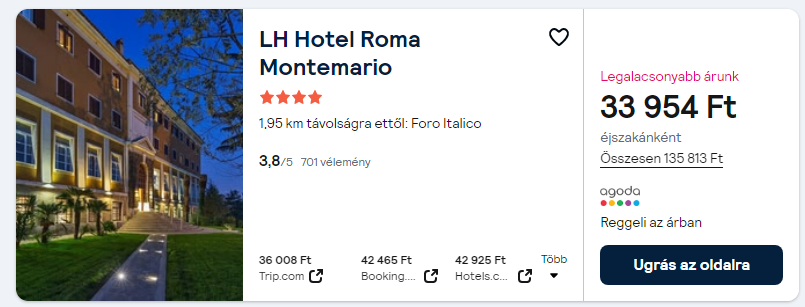 Repülőjegy + szállás reggelivel = 93.380 Ft/fő