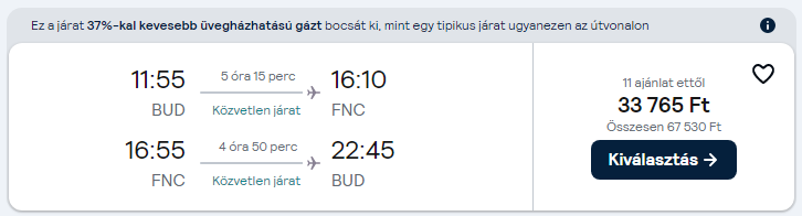 Az árak a megosztás pillanatában érvényesek, mivel az olcsó repülőjegyekből csak minimális darab áll rendelkezésre egy adott időpontra. A légitársaságok a szabad helyek függvényében módosíthatják áraikat. A repülőjegy ára a legalacsonyabb kategóriára vonatkozik és tartalmaz 1 ingyenesen felvihető kisméretű kézitáskát/hátizsákot. További részletek a légitársaság weboldalán.
