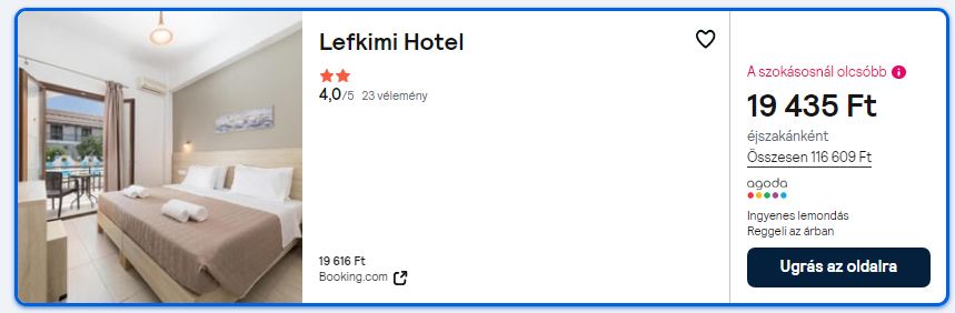 Repülőjegy + szállás = 85.125 Ft/fő