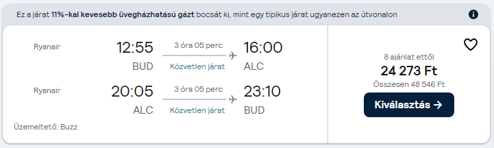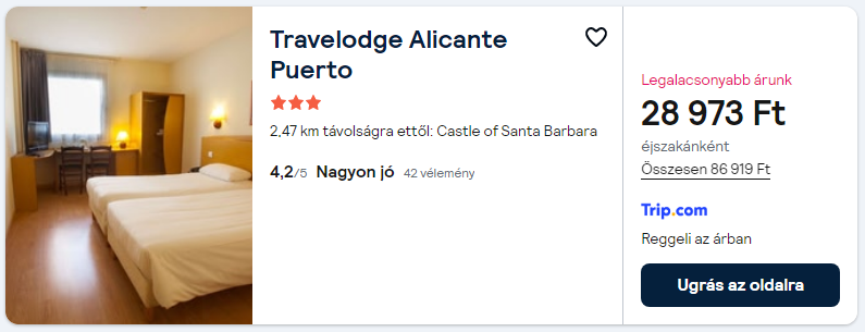 Repülőjegy + szállás reggelivel = 67.735 Ft/fő