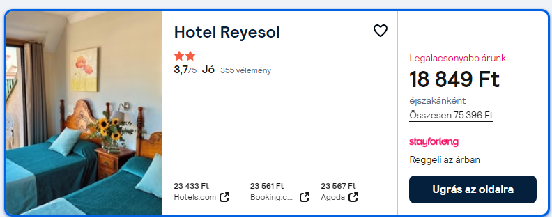 Repülőjegy + szállás reggelivel = 69.690 Ft/fő