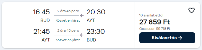 Repülőjegy + szállás reggelivel = 47.445 Ft/fő
