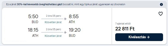 Az árak a megosztás pillanatában érvényesek, mivel az olcsó repülőjegyekből csak minimális darab áll rendelkezésre egy adott időpontra. A légitársaságok a szabad helyek függvényében módosíthatják áraikat. A repülőjegy ára a legalacsonyabb kategóriára vonatkozik és tartalmaz 1 ingyenesen felvihető kisméretű kézitáskát/hátizsákot. További részletek a légitársaság weboldalán.