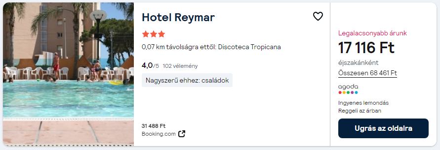 Repülőjegy + szállás reggelivel = 64.110 Ft/fő