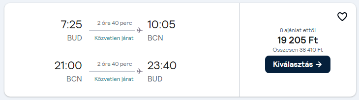 Az árak a megosztás pillanatában érvényesek, mivel az olcsó repülőjegyekből csak minimális darab áll rendelkezésre egy adott időpontra. A légitársaságok a szabad helyek függvényében módosíthatják áraikat. A repülőjegy ára a legalacsonyabb kategóriára vonatkozik és tartalmaz 1 ingyenesen felvihető kisméretű kézitáskát/hátizsákot. További részletek a légitársaság weboldalán.