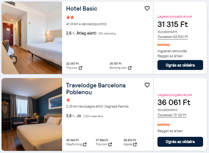 *A repülőjegy árakat és a szállásokat a gombokra kattintva ellenőrizheted.