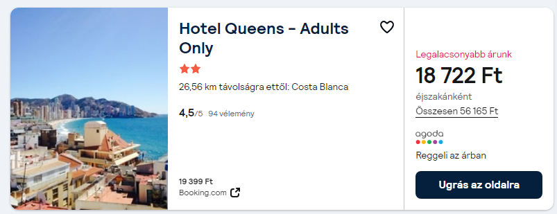 Repülőjegy + szállás reggelivel = 51.520 Ft/fő