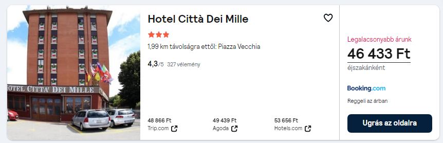 Repülőjegy + szállás reggelivel = 40.685 Ft/fő