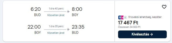 Az árak a megosztás pillanatában érvényesek, mivel az olcsó repülőjegyekből csak minimális darab áll rendelkezésre egy adott időpontra. A légitársaságok a szabad helyek függvényében módosíthatják áraikat. A repülőjegy ára a legalacsonyabb kategóriára vonatkozik és tartalmaz 1 ingyenesen felvihető kisméretű kézitáskát/hátizsákot. További részletek a légitársaság weboldalán.