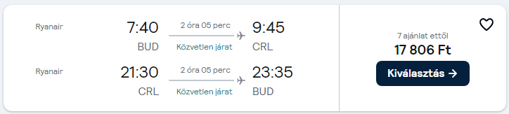 Az árak a megosztás pillanatában érvényesek, mivel az olcsó repülőjegyekből csak minimális darab áll rendelkezésre egy adott időpontra. A légitársaságok a szabad helyek függvényében módosíthatják áraikat. A repülőjegy ára a legalacsonyabb kategóriára vonatkozik és tartalmaz 1 ingyenesen felvihető kisméretű kézitáskát/hátizsákot. További részletek a légitársaság weboldalán.
