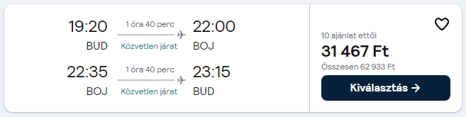 Repülőjegy + szállás reggelivel = 87.735 Ft/fő