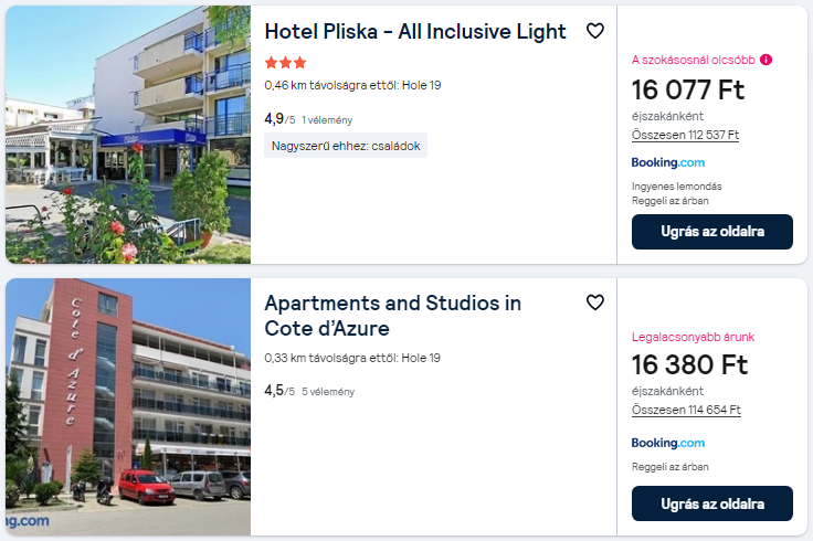 *A repülőjegy árakat és a szállásokat a gombokra kattintva ellenőrizheted.