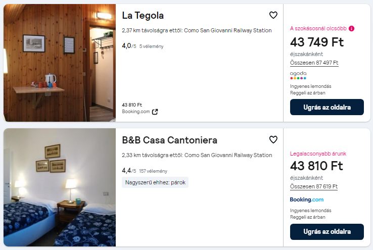 Olcsó 4 – 5 napos utazási tippek Comói tó-hoz:
