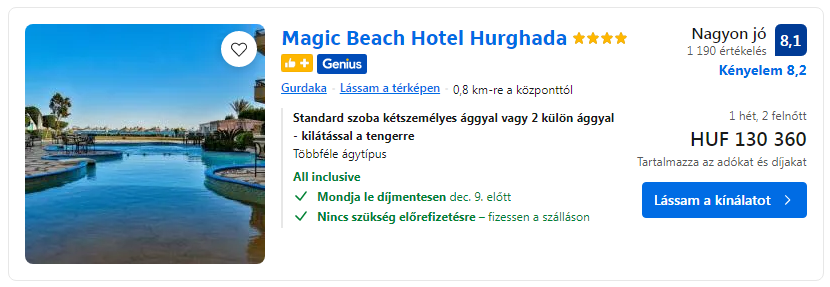 A repjegy és szállás árakat a lenti linkekre kattintva tudod ellenőrizni! Mivel ez az utazási tipp 2025.09.16. óta nem frissült, ezért az árak változhattak. Ha elsőként szeretnél értesülni új olcsó utazási tippekről, kapcsold be a böngésző értesítést a weboldal felső sarkában! Kövess minket Facebookon és nézd meg a legfrissebb utazási tippjeinket itt!