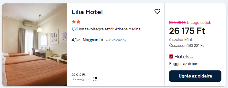 Repülőjegy + szállás reggelivel = 121.050 Ft/fő