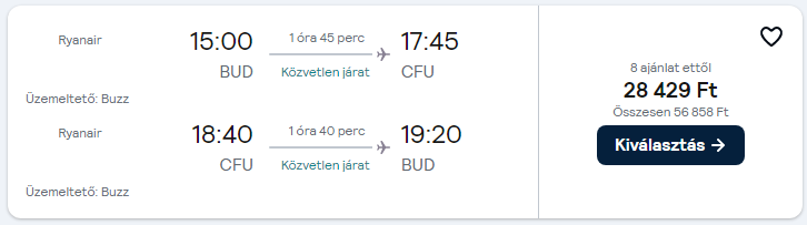 Külön-külön a repülőjegy és szállás képre kattintva tudod ellenőrizni az árakat és foglalni.