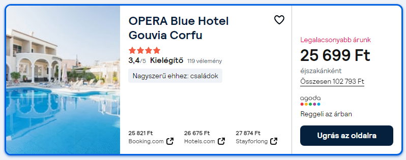 Repülőjegy + szállás reggelivel = 79.825 Ft/fő