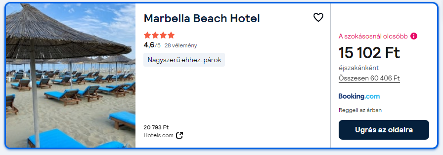 Repülőjegy + Hotel reggelivel = 49.225 Ft/fő