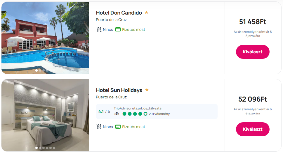 Tenerife repülőjegy + Szállás = 107.840 Ft/fő