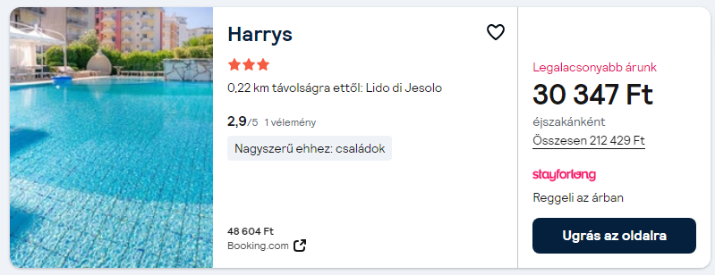 Olcsó egyhetes nyaralás tippek Lido di Jesoloban repülővel, szállással, több olcsó időpontban: