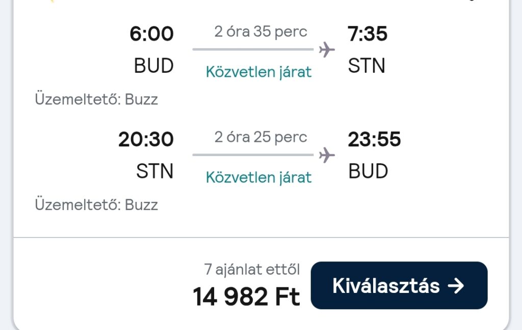 Az árak a megosztás pillanatában érvényesek, mivel az olcsó repülőjegyekből csak minimális darab áll rendelkezésre egy adott időpontra. A légitársaságok a szabad helyek függvényében módosíthatják áraikat. A repülőjegy ára a legalacsonyabb kategóriára vonatkozik és tartalmaz 1 ingyenesen felvihető kisméretű kézitáskát/hátizsákot. További részletek a légitársaság weboldalán.