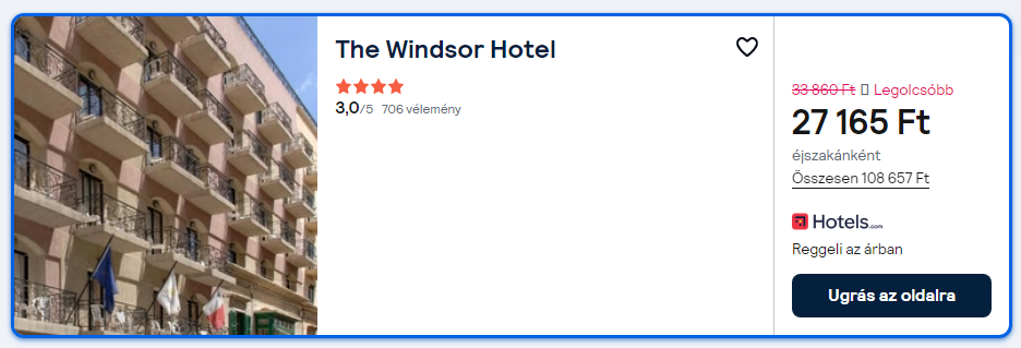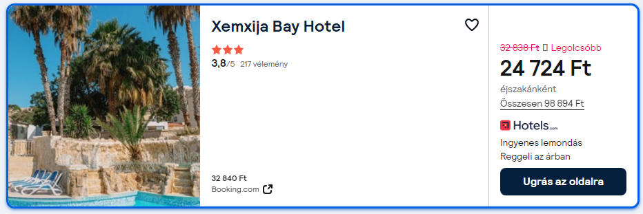 Repülőjegy + Hotel reggelivel = 102.165 Ft/fő