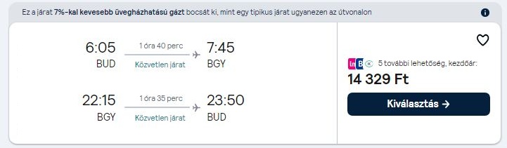Retúr repülőjegy Budapestről Milánóba (Bergamo)