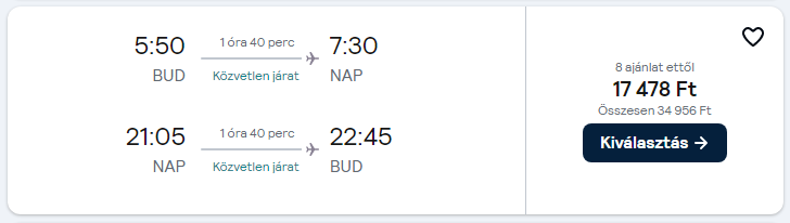 Olcsó utazási tippek 2 teljes nap Nápolyba repülővel, szállással, több olcsó időpontban: