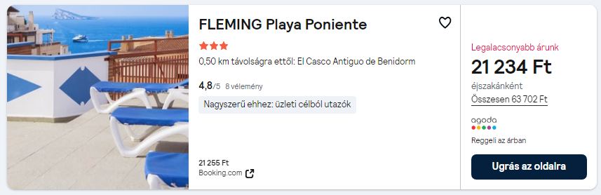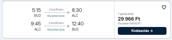 Repülőjegy + szállás reggelivel = 61.820 Ft/fő