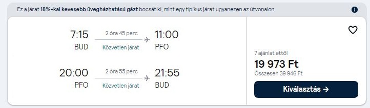 Az árak a megosztás pillanatában érvényesek, mivel az olcsó repülőjegyekből csak minimális darab áll rendelkezésre egy adott időpontra. A légitársaságok a szabad helyek függvényében módosíthatják áraikat. A repülőjegy ára a legalacsonyabb kategóriára vonatkozik és tartalmaz 1 ingyenesen felvihető kisméretű kézitáskát/hátizsákot. További részletek a légitársaság weboldalán.
