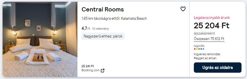 Repülőjegy + szállás reggelivel = 70.115 Ft/fő