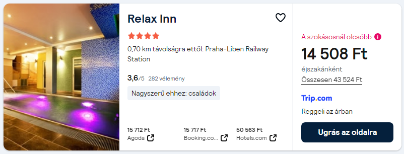 Repülőjegy + szállás reggelivel = 40.955 Ft/fő