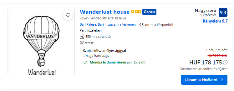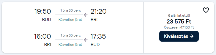 Repülőjegy + szállás = 112.665 Ft/fő