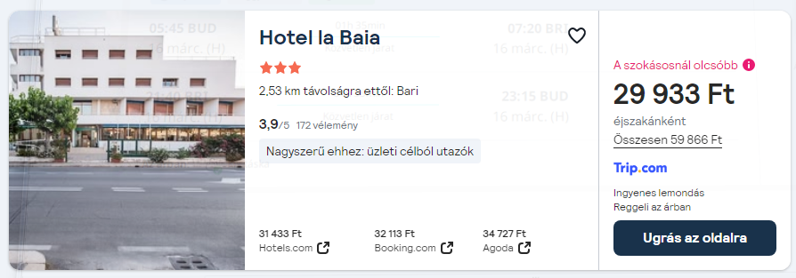 Repülőjegy + szállás reggelivel = 50.710 Ft/fő
