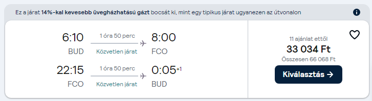 Repülőjegy + szállás reggelivel = 66.350 Ft/fő