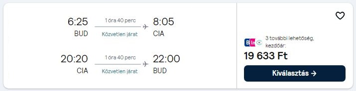 Az árak a megosztás pillanatában érvényesek, mivel az olcsó repülőjegyekből csak minimális darab áll rendelkezésre egy adott időpontra. A légitársaságok a szabad helyek függvényében módosíthatják áraikat. A repülőjegy ára a legalacsonyabb kategóriára vonatkozik és tartalmaz 1 ingyenesen felvihető kisméretű kézitáskát/hátizsákot. További részletek a légitársaság weboldalán.