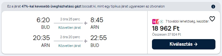 Az árak a megosztás pillanatában érvényesek, mivel az olcsó repülőjegyekből csak minimális darab áll rendelkezésre egy adott időpontra. A légitársaságok a szabad helyek függvényében módosíthatják áraikat. A repülőjegy ára a legalacsonyabb kategóriára vonatkozik és tartalmaz 1 ingyenesen felvihető kisméretű kézitáskát/hátizsákot. További részletek a légitársaság weboldalán.
